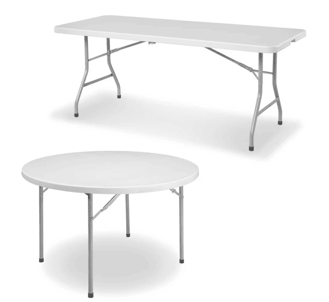 Lifetime 6-foot folding tables are designed for durability and portability, featuring high-density polyethylene tabletops and powder-coated steel frames. They are stain-resistant, easy to clean, and suitable for indoor and outdoor use. The tables fold flat for convenient storage and transport, making them ideal for events, meetings, or recreational activities.