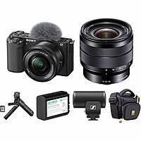 The Sony Alpha ZV-E10 II is a versatile APS-C mirrorless camera tailored for content creators and vloggers. Paired with the 16-50mm f/3.5-5.6 OSS II lens, this kit offers a comprehensive solution for both still photography and video recording. Key Features: 26MP APS-C Exmor R CMOS Sensor: Delivers high-resolution images with enhanced sensitivity and low noise performance. 4K Video Recording: Supports up to UHD 4K60p video capture, providing smooth and detailed footage. Advanced Autofocus System: Features a 759-point Fast Hybrid Phase Detection AF system with Real-time Eye AF for humans, animals, and birds, ensuring sharp focus in various shooting scenarios. Vari-angle Touchscreen LCD: The 3.0" flip-out screen with a rotating user interface facilitates easy framing for both horizontal and vertical content creation. Enhanced Battery Life: Utilizes the NP-FZ100 battery, offering extended shooting durations compared to its predecessors.