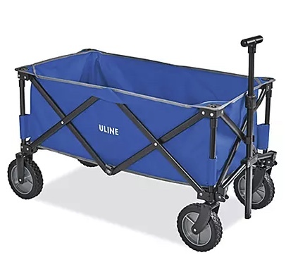 The Blue Utility Wagon is a versatile and durable solution for transporting various items, making it ideal for activities such as camping, shopping, beach outings, and gardening. Designed with convenience in mind, this wagon offers ample space and easy maneuverability. Product Description: Material: Constructed with a sturdy polyester fabric supported by a robust steel frame, ensuring longevity and reliability. Dimensions: The wagon measures 36 inches in length, 19 inches in width, and 22 inches in height, providing substantial capacity for hauling gear. Weight Capacity: Capable of supporting up to 180 lbs, it accommodates a wide range of items, from equipment to groceries. Portability: Designed for convenience, the wagon folds down to 15% of its operational size, making it compact enough to fit in a car trunk or closet for easy storage. Mobility: Equipped with large 7-inch rubber wheels, it ensures smooth movement across various terrains, including sand, gravel, and uneven surfaces. Color: Features a vibrant blue color, adding a stylish touch to its functional design.